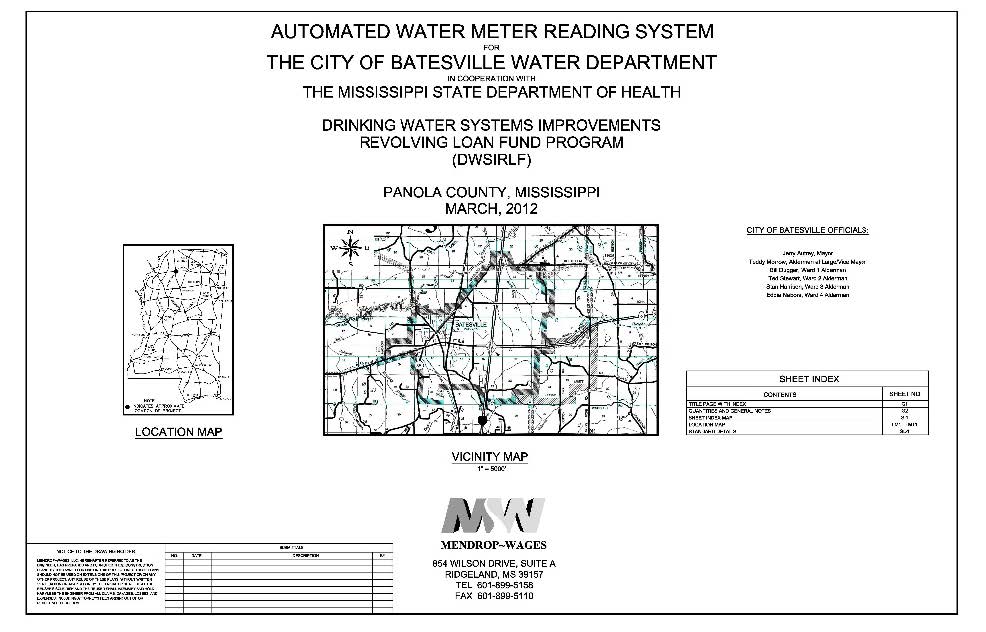 Beginning in 2011, the City of Batesville used funds from the Mississippi State Department of Health’s Drinking Water Systems Improvements Revolving Loan Fund (DWSIRLF) to upgrade their existing meters with an Automated Meter Readering (AMR) System for all drinking water customers. Mendrop Engineering Resources (formerly Mendrop~Wages, LLC) was contracted to provide engineering services including the development of the water facilities plan, the development of plans and specifications, preparing contract documents, management of the bidding process, and construction engineering and inspection (CE&I) services for this project to install approximately 3,700 new Automated Meter.